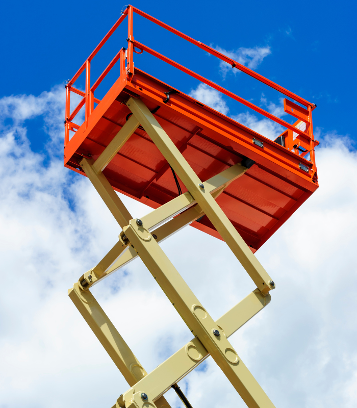 Locação de Plataforma Elevatória Tesoura de até 12 metros, perfeita para manutenção predial, instalações, eventos e muito mais.
