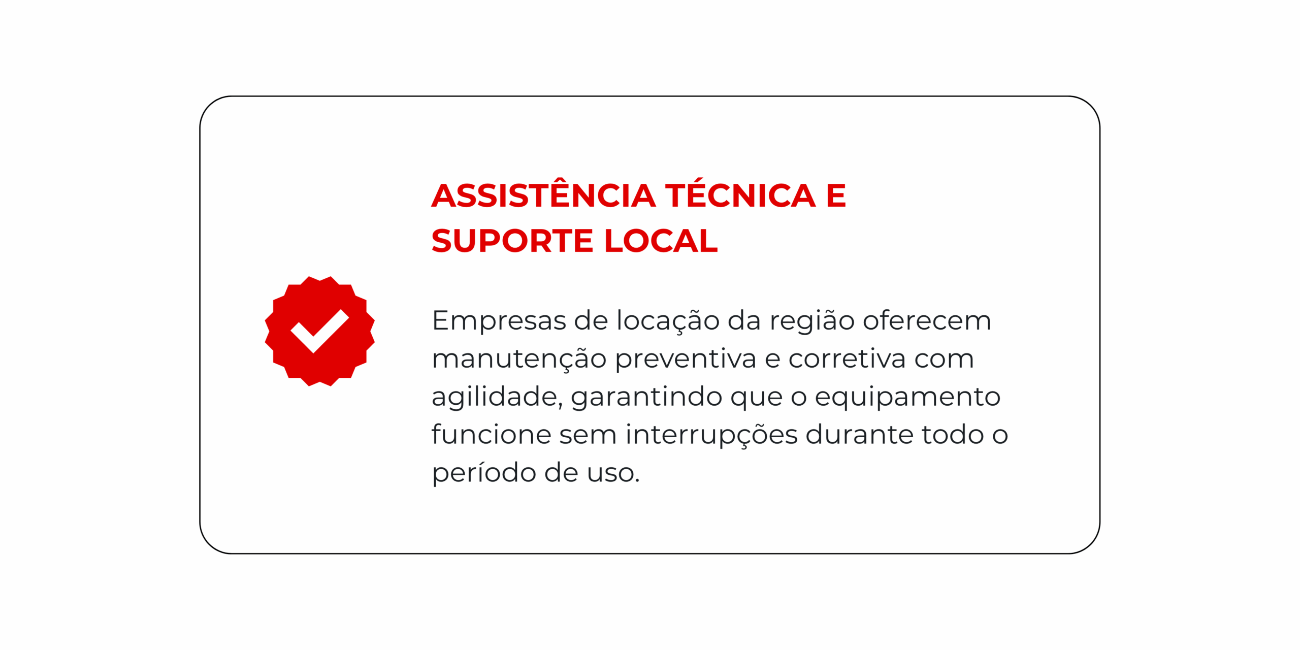 Com equipamentos modernos, revisados e prontos para uso, garantimos eficiência desde a entrega até o suporte técnico durante o período de locação. Valorizamos a pontualidade, o atendimento direto e a transparência em cada etapa do serviço.